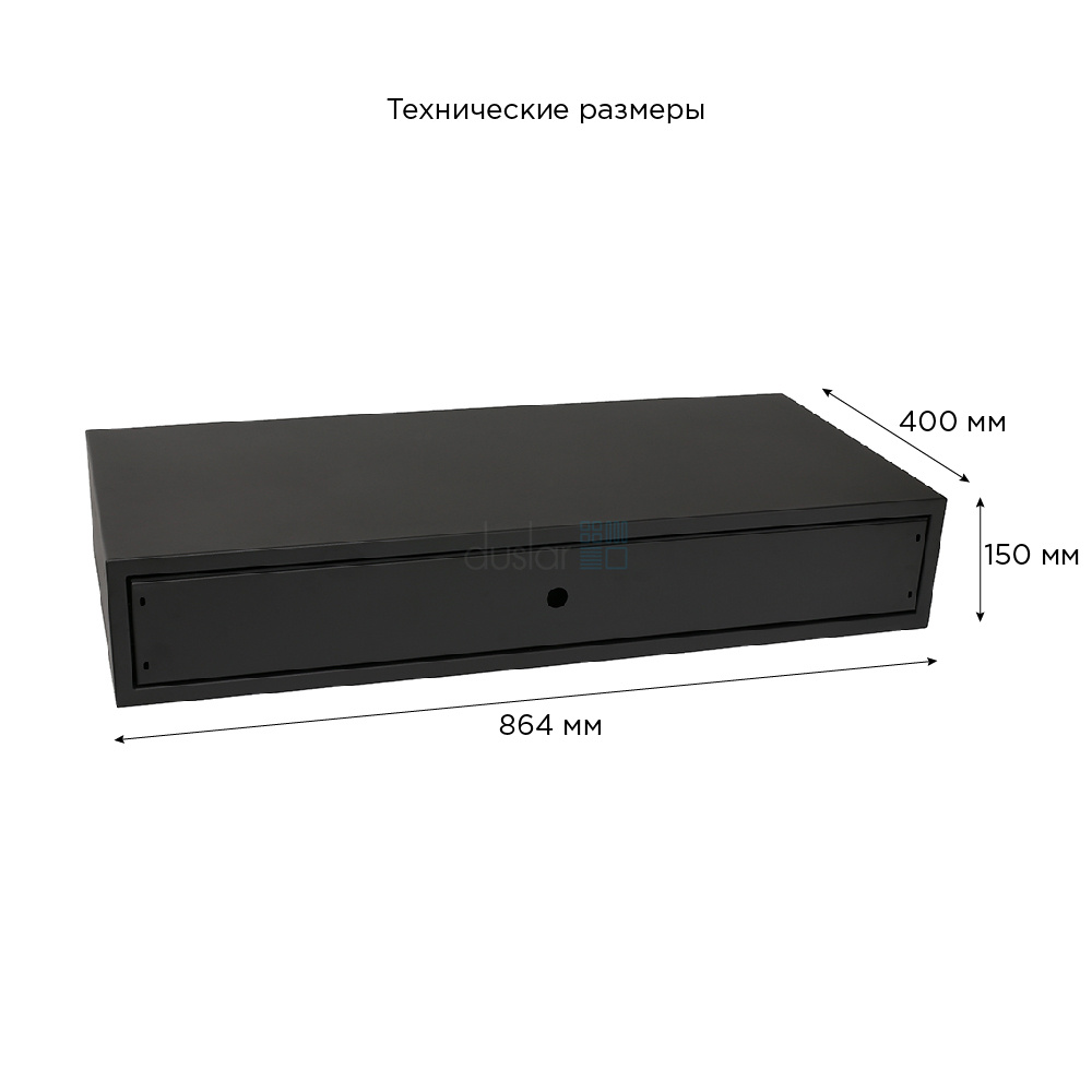 • Габариты ящика с направляющими: ширина 864 мм, глубина 400 мм, высота 150 мм.