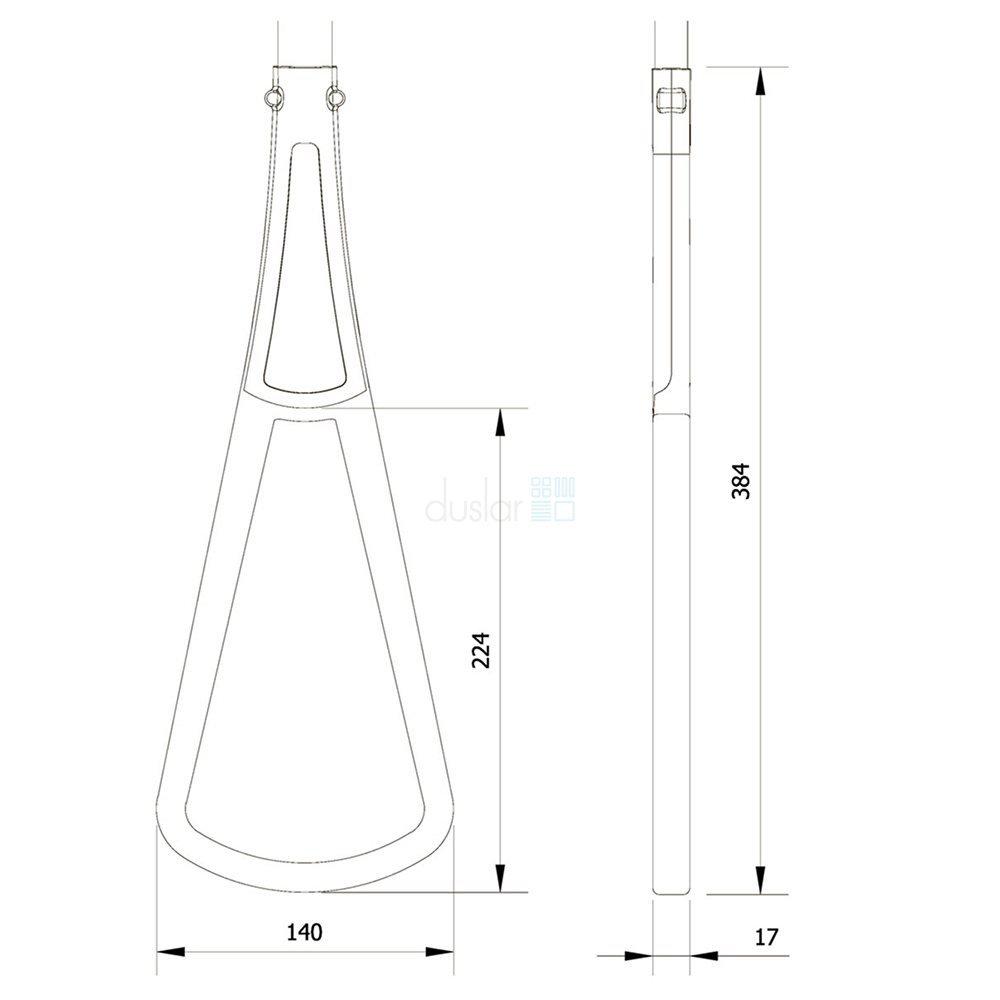 • Габариты ручки: ширина 17 мм, глубина 140 мм, высота 384 мм.