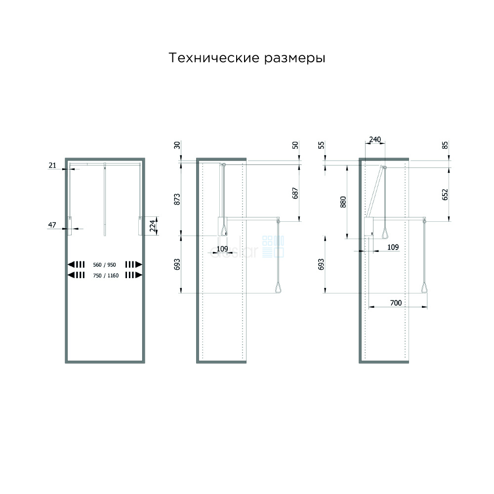 • Подходит для установки как в открытых гардеробных, так и в шкафах-купе, шкафах с раздвижными фасадами.