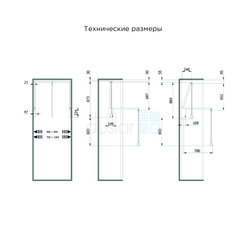 • Подходит для установки как в открытых гардеробных, так и в шкафах-купе, шкафах с раздвижными фасадами.