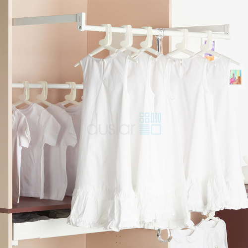 • Помогает эффективно организовать верхнее пространство шкафа гардеробной комнаты для хранения одежды на вешалках и обеспечивает максимальную доступность к вещам.