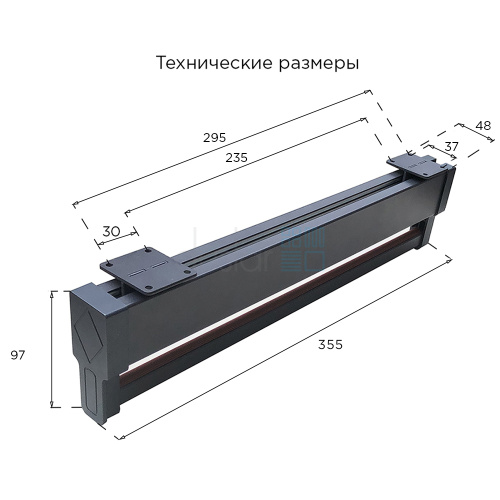 • Габариты штанги с направляющей: ширина 48 мм, глубина 355 мм, высота 97 мм.