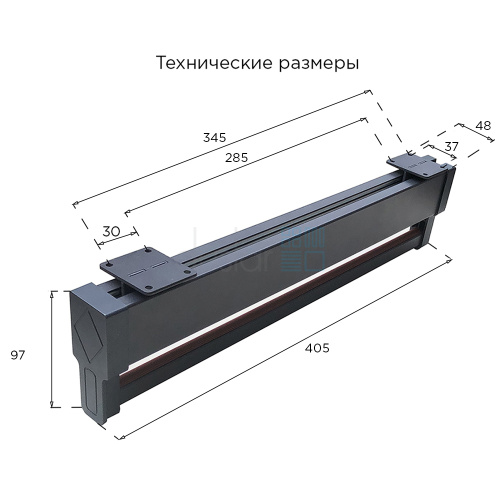 • Габариты штанги с направляющей: ширина 48 мм, глубина 405 мм, высота 97 мм.