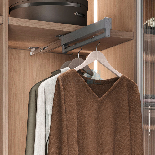 • Выдвижная штанга – идеальное решение не только для сохранения внешнего вида одежды, но и для максимальной оптимизации внутреннего пространства шкафов и гардеробных комнат.