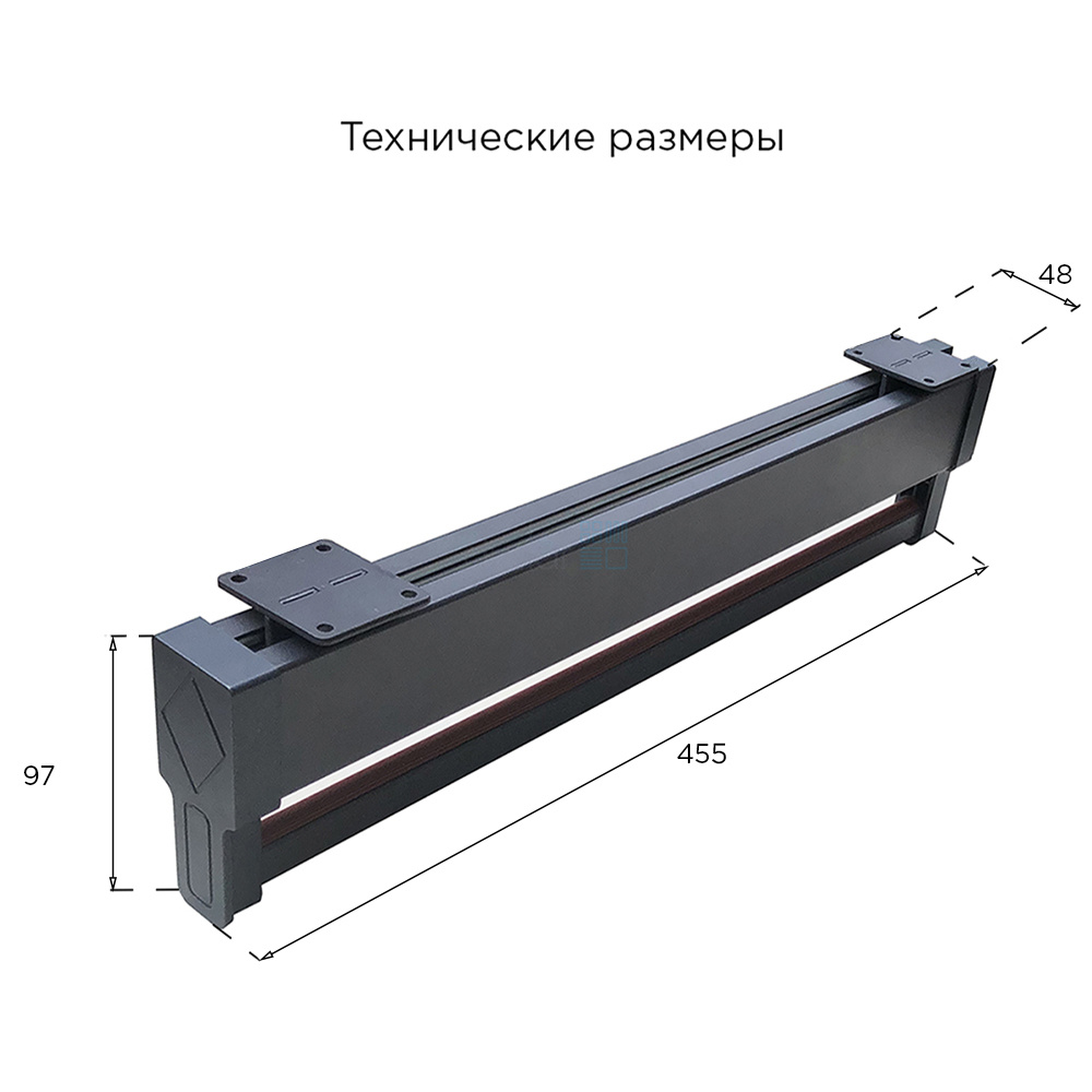 • Габариты штанги с направляющей: ширина 48 мм, глубина 455 мм, высота 97 мм.