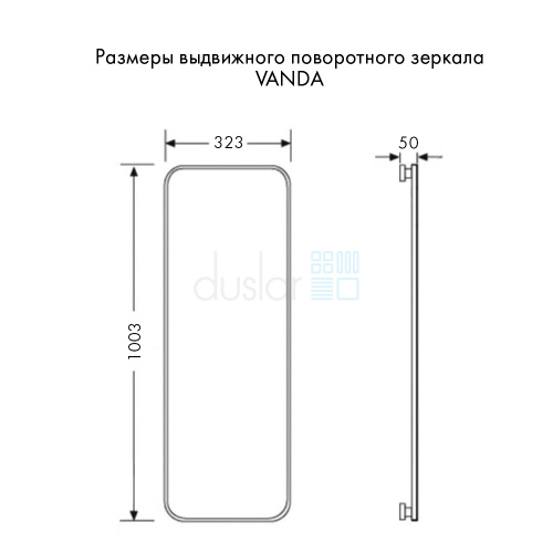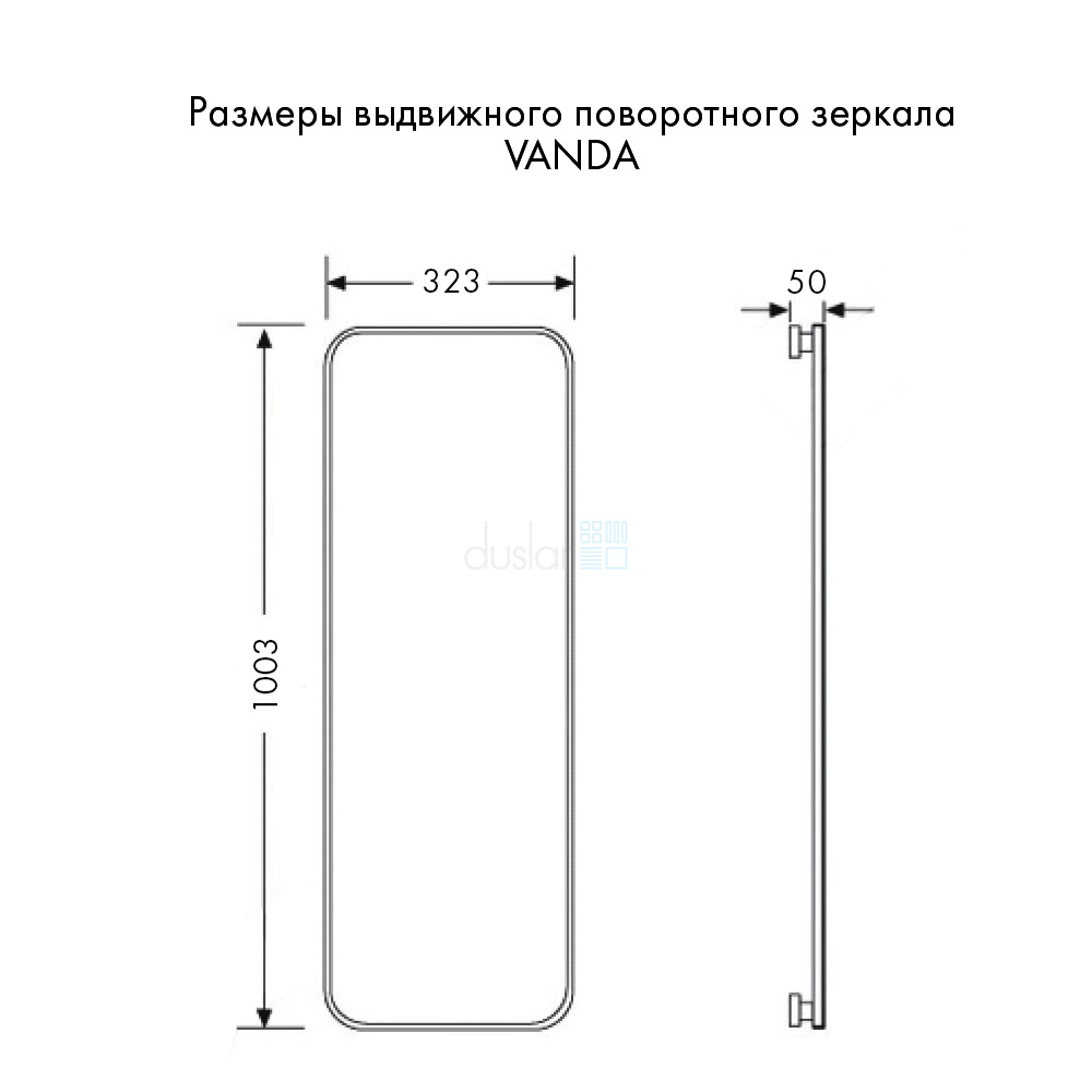 • Габариты зеркала с креплением: ширина 323 мм, глубина 50 мм, высота 1003 мм.