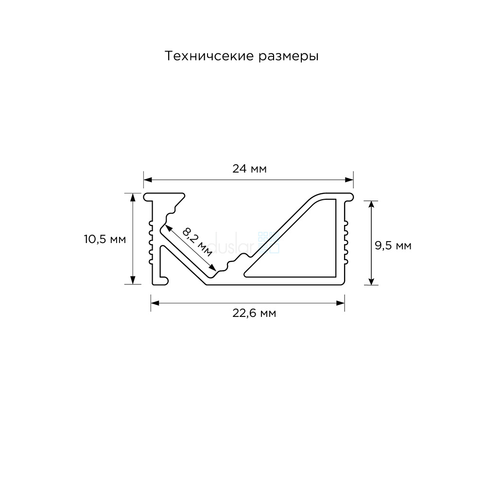 • Габариты профиля: длина 3000 мм, ширина 24 мм, высота 10,5 мм.