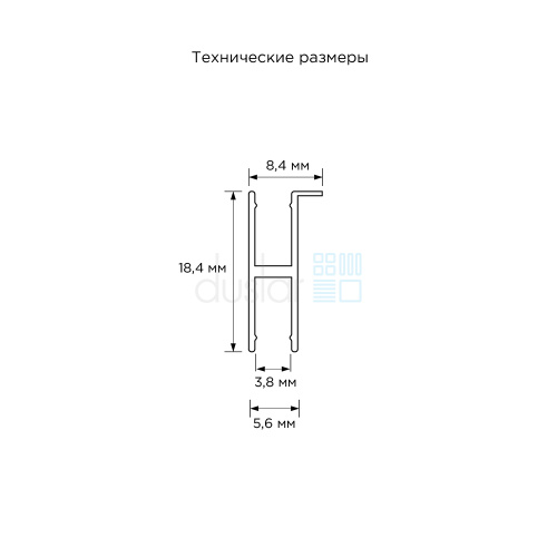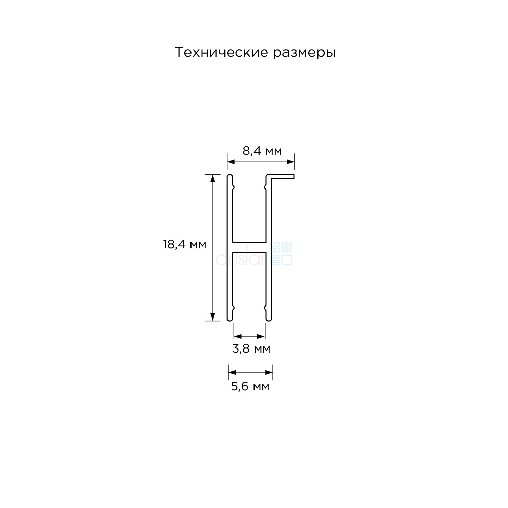 • Габариты профиля: длина 3000 мм, ширина 8,4 мм, высота 18,4 мм.