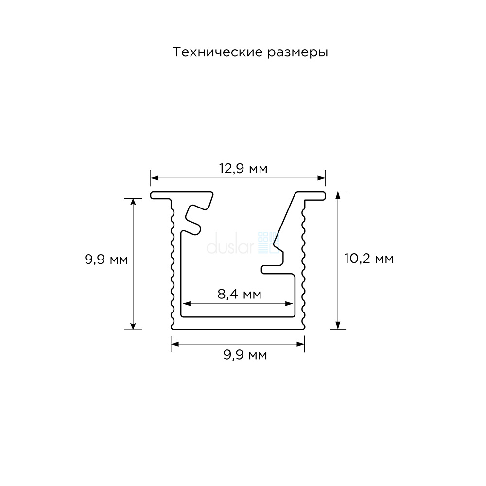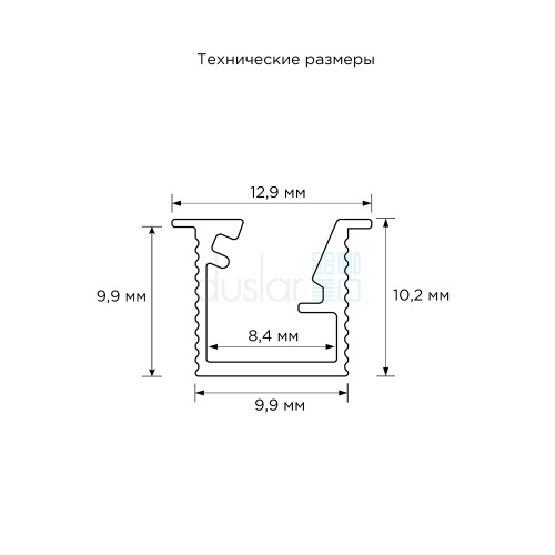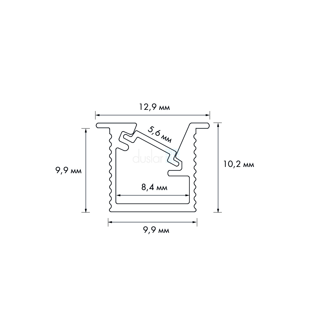 • Габариты профиля: длина 3000 мм, ширина 12,9 мм, высота 10,2 мм.