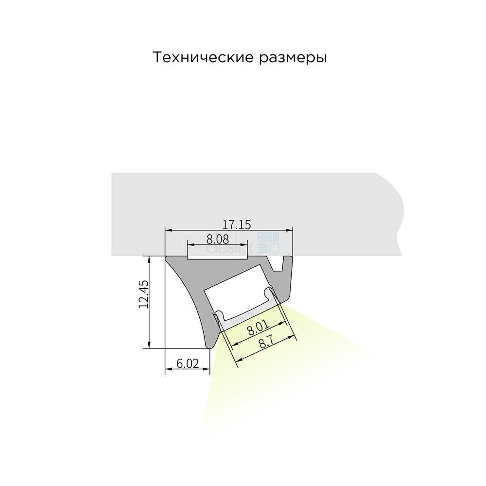 • Алюминиевый профиль для светодиодной ленты имеет накладную конструкцию, что делает его идеальным решением для монтажа на любую плоскую поверхность.