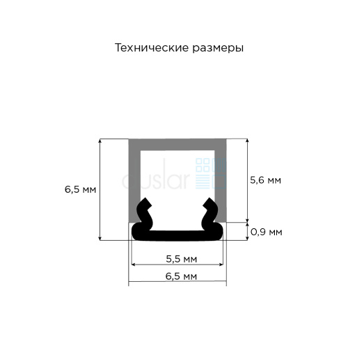 • Габариты профиля: длина 3000 мм, ширина 6,3 мм, высота 6,5 мм.