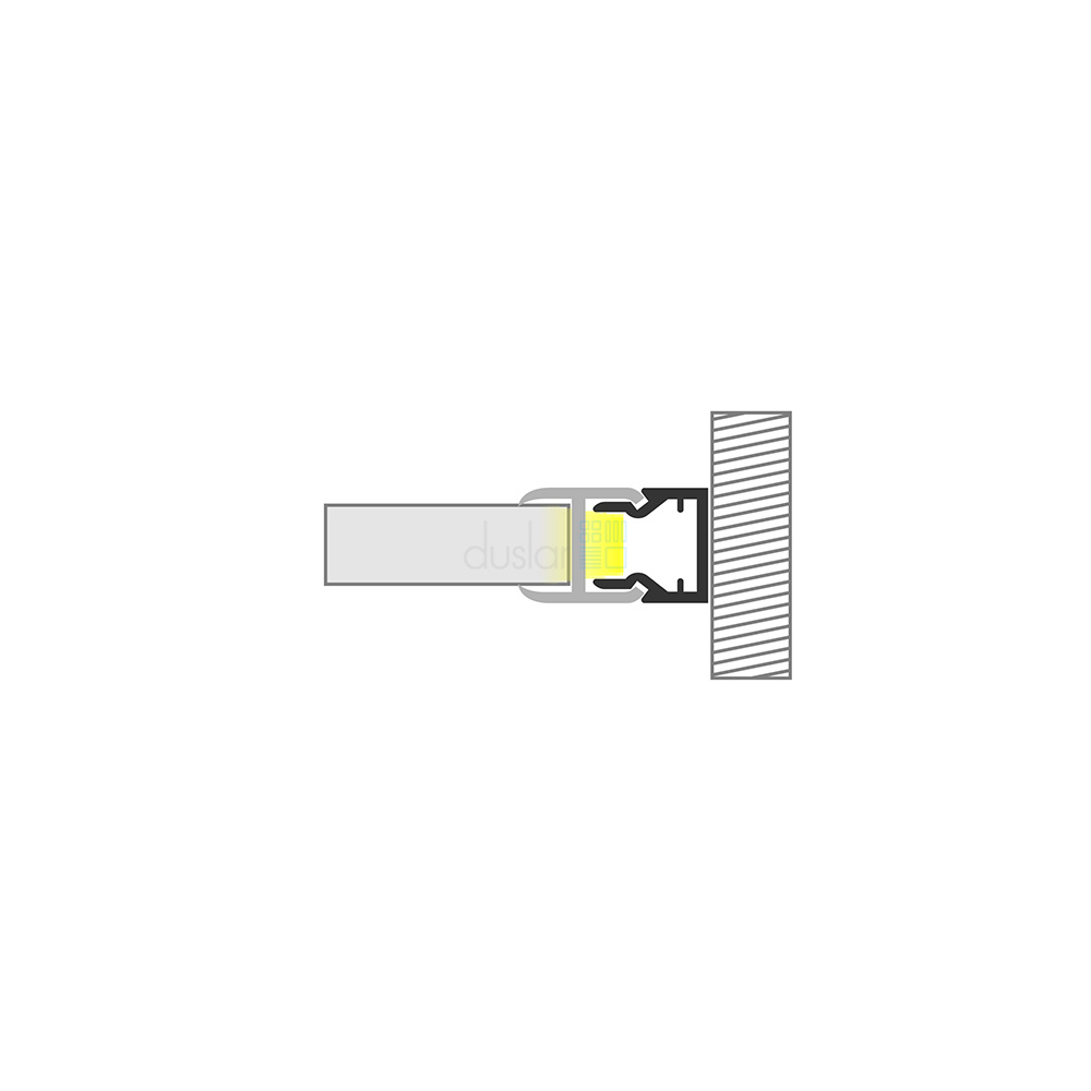 • Алюминиевый профиль и рассеиватель устанавливаются на торец стеклянной полки и не требует дополнительного крепления.