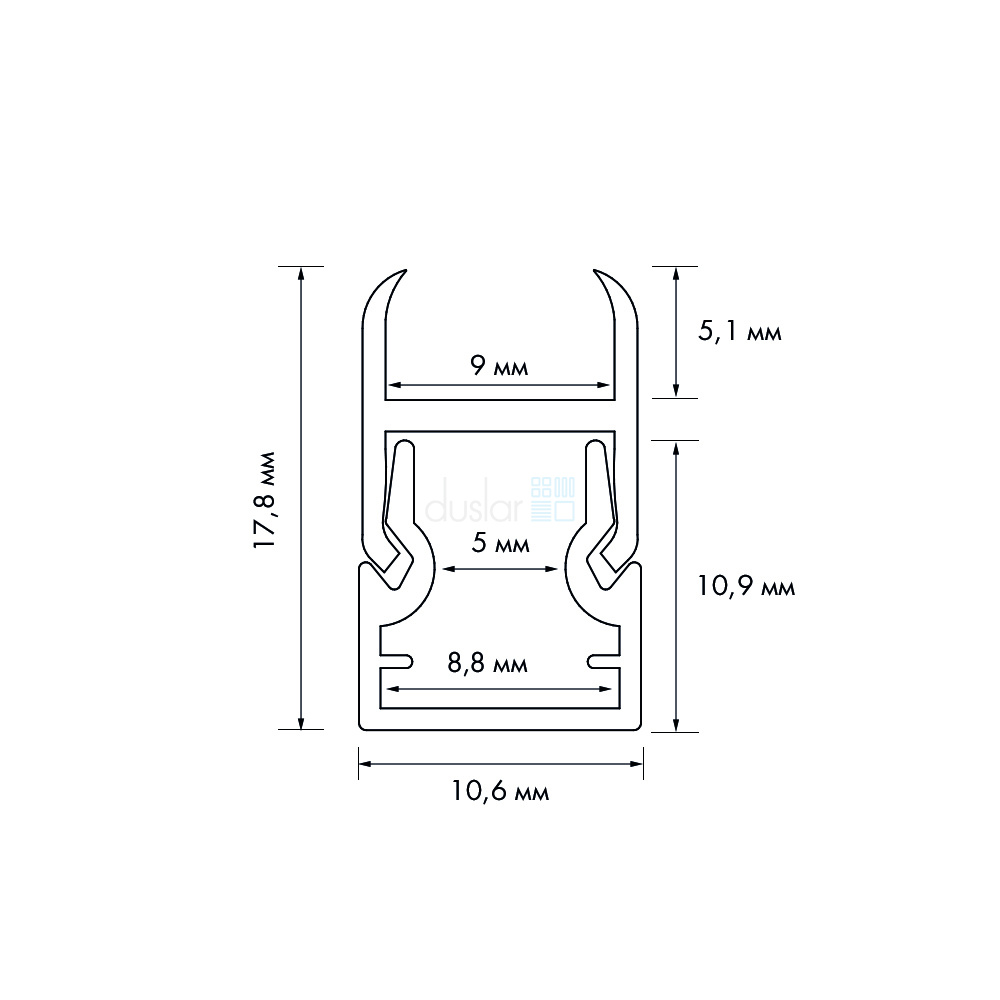 • Габариты профиля: длина 3000 мм, ширина 10,6 мм, высота 10,9 мм.