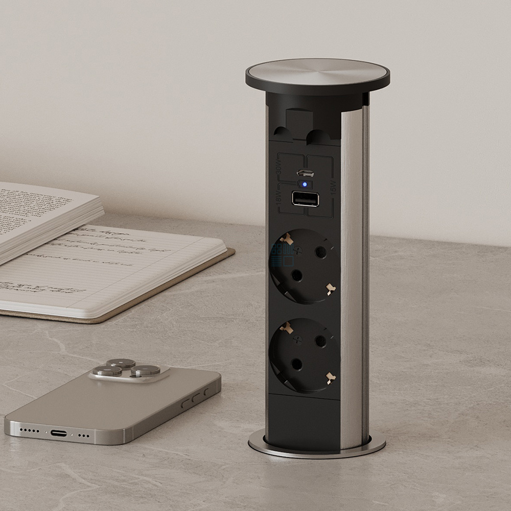 • Розетка выдвижного типа, специально разработанная для обеспечения удобства и функциональности в пространстве.