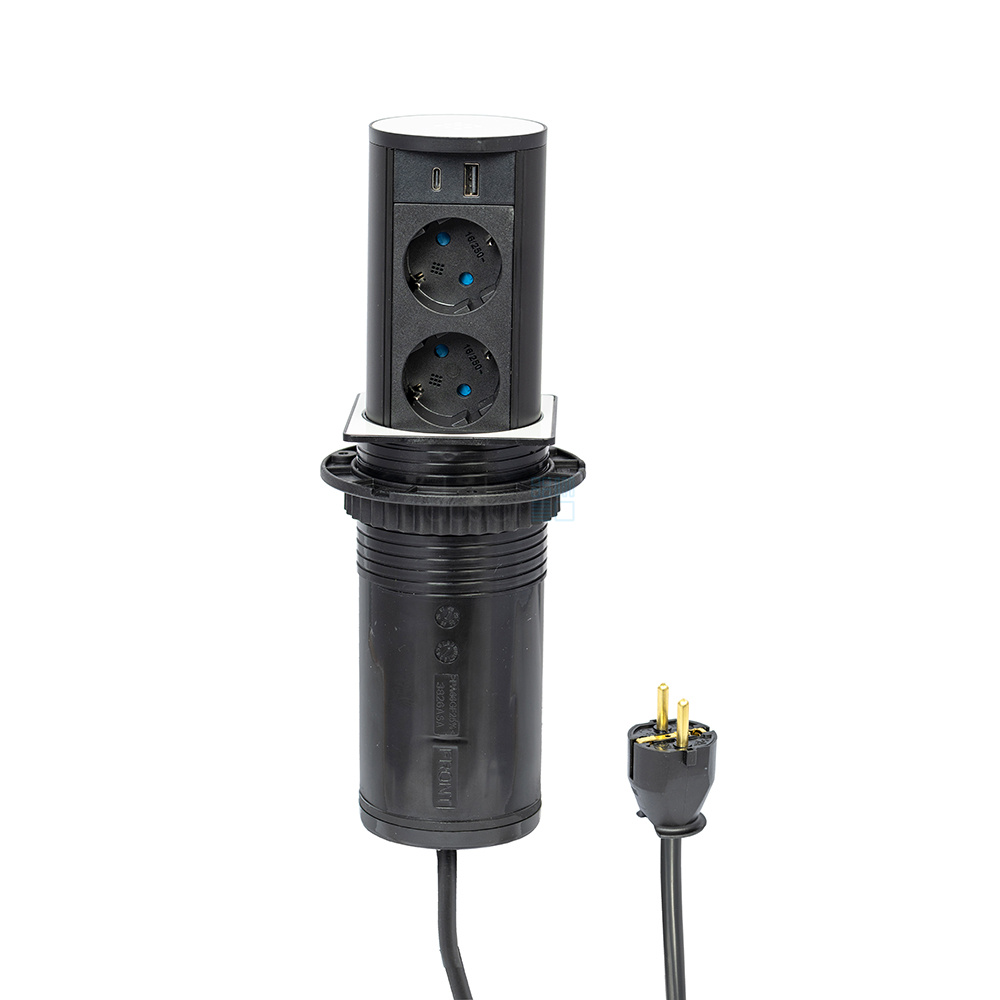 • Врезная розетка позволяет использовать её при необходимости и скрывать в остальное время, при этом в закрытом состоянии она выступает всего на 3 мм от поверхности.