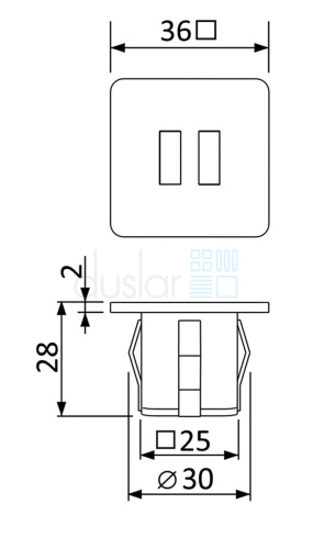 - Габариты розетки: длина 36 мм, ширина 36 мм, высота 28 мм.