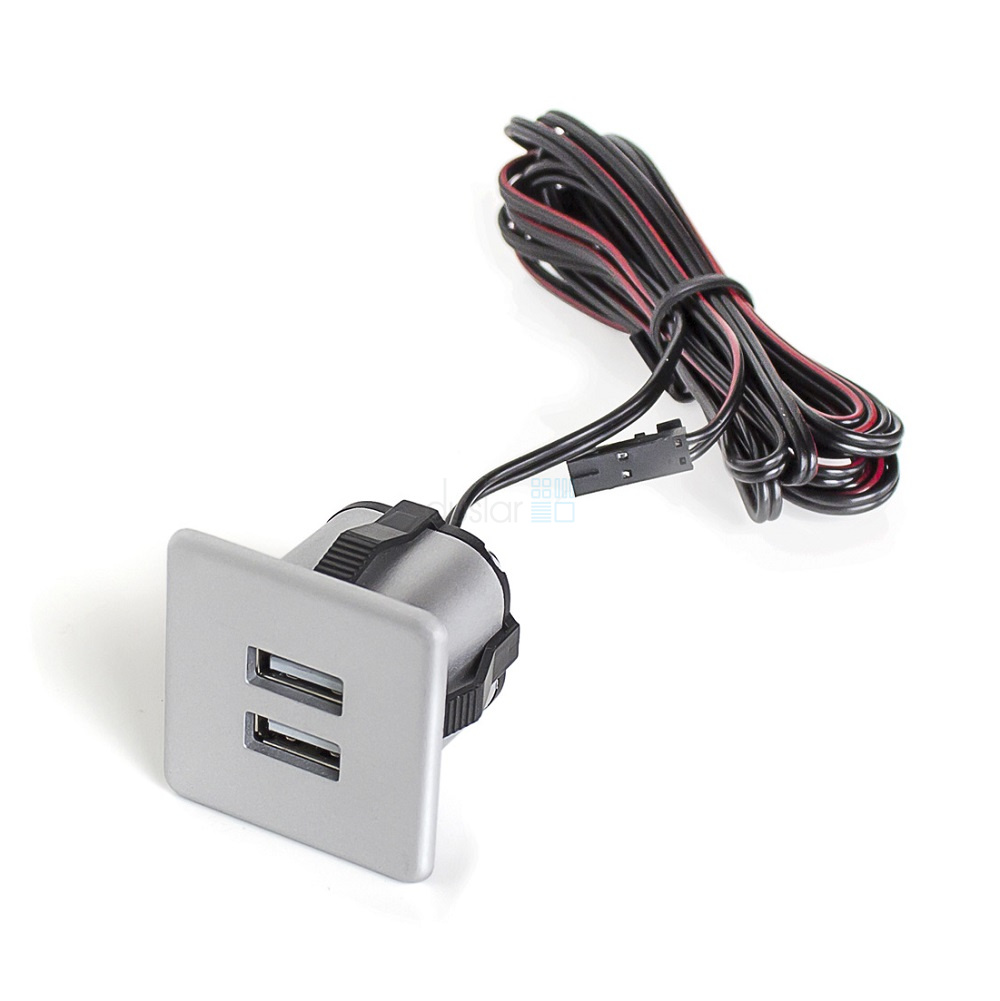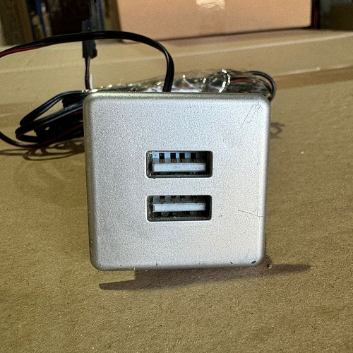 Комплектация: USB розетка с 2 разъёмами – 1 шт., кабель 0,5 м с мини-штекером – 1 шт.