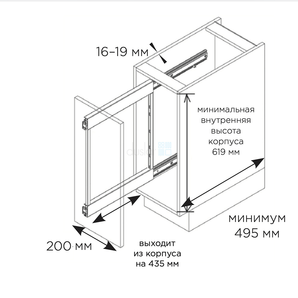 • Подходит для установки в корпуса с толщиной ДСП 16-19 мм.
