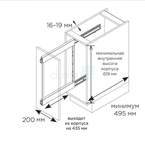 • Минимальные внутренние габариты корпуса: глубина 495 мм, высота 619 мм.