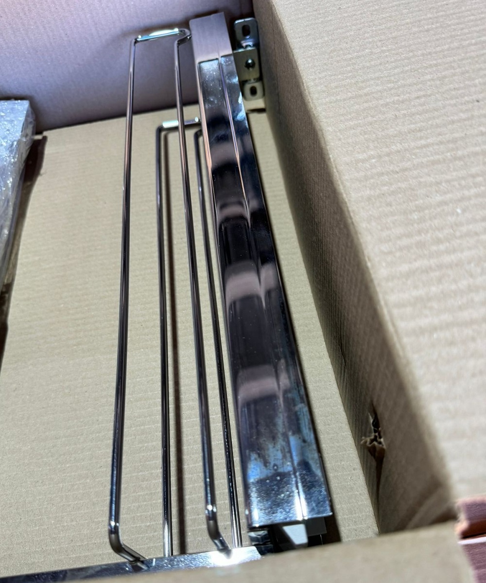 УЦЕНЕННАЯ бутылочница с жестяным дном с полотенцедержателем, выдвижной фасад 150 мм, хром