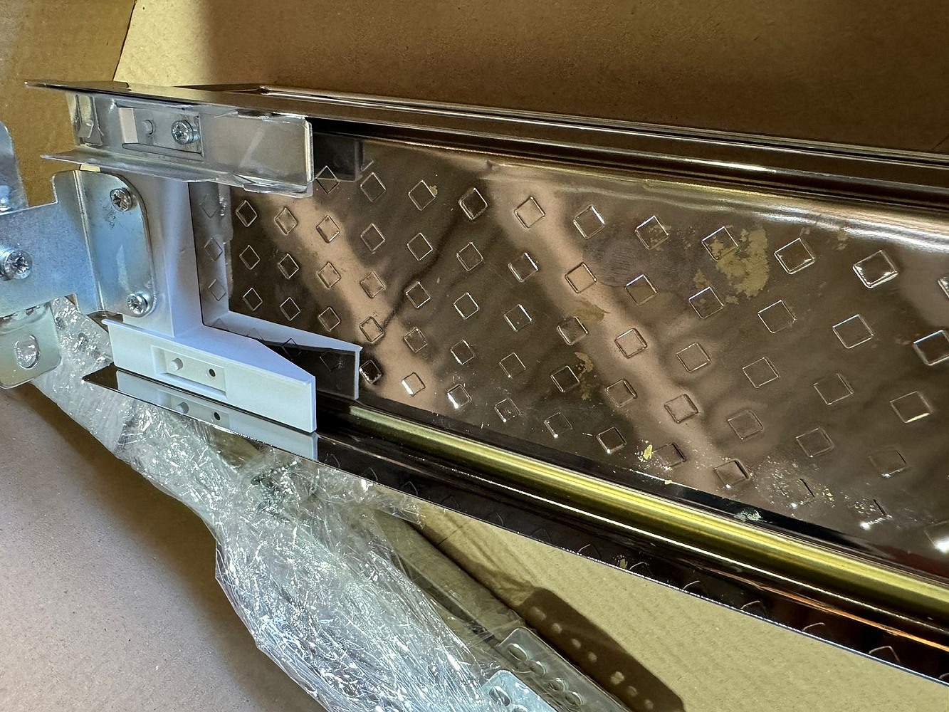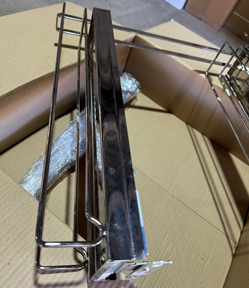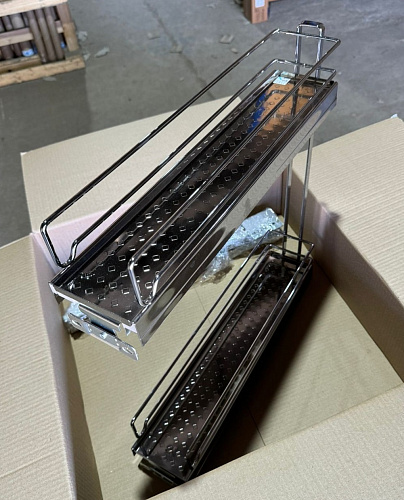 УЦЕНЕННАЯ бутылочница с жестяным дном, выдвижной фасад 150 мм, хром