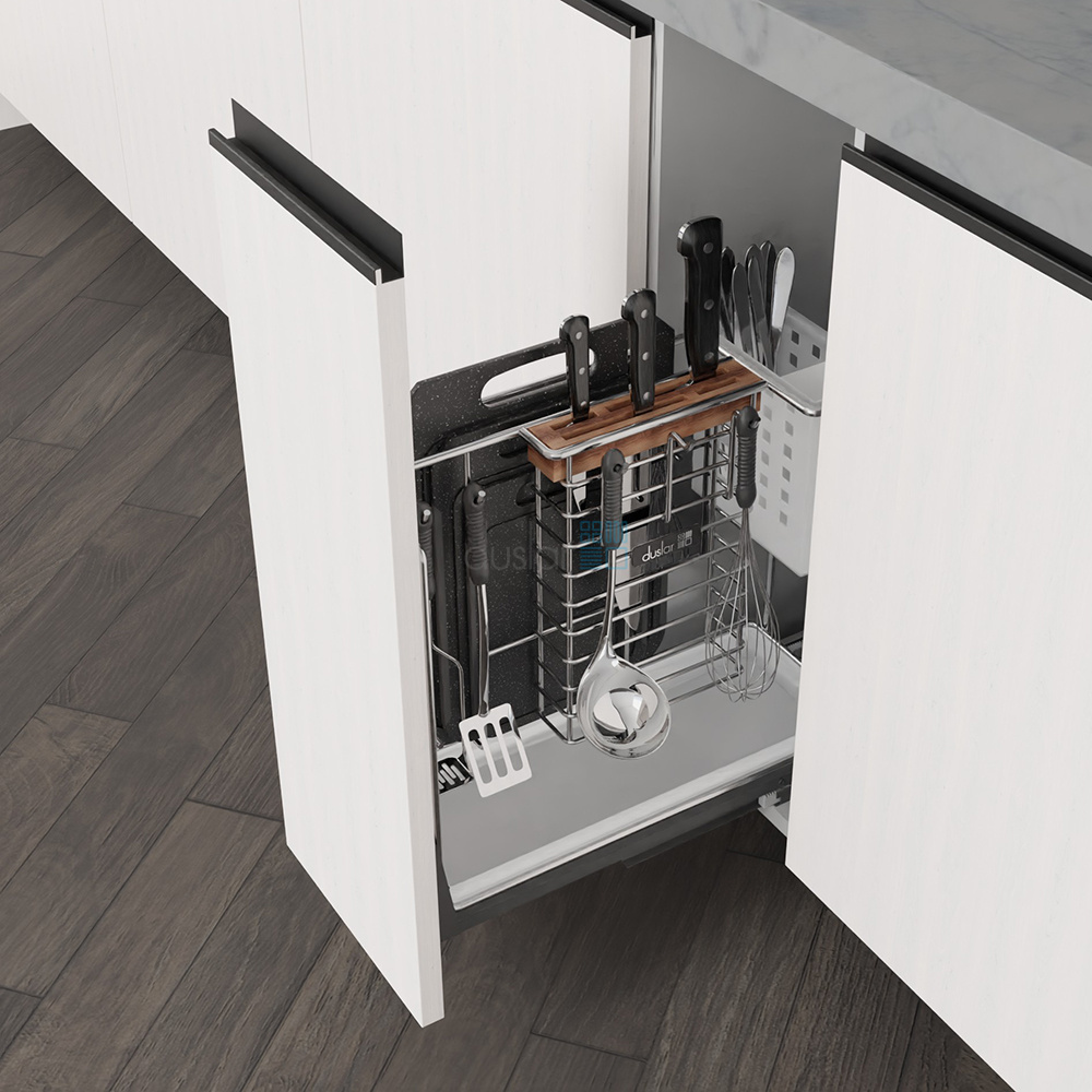 • Выдвижная система Cooking - универсальный органайзер для хранения кухонных принадлежностей, который позволяет собрать все необходимые приборы в одном месте.