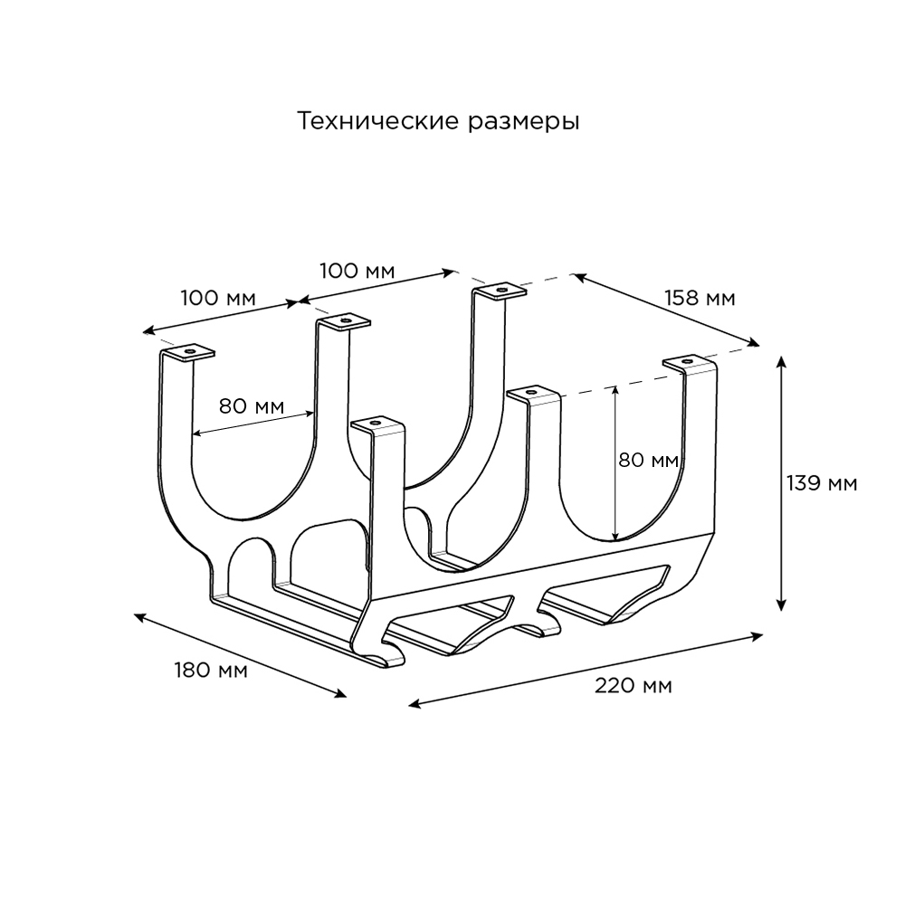 • Габариты держателя: длина 220 мм, ширина 180 мм, высота 139 мм.