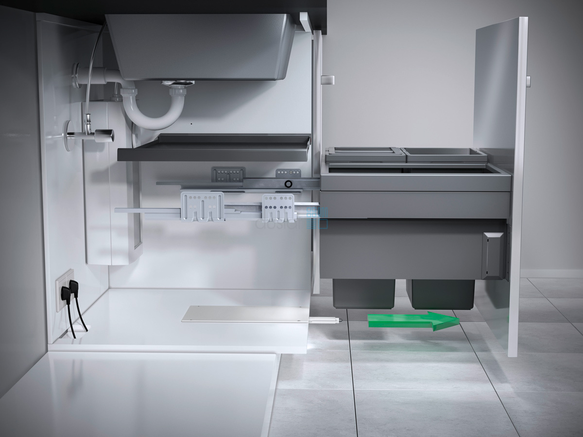 С помощью системы Libero вы сможете бесконтактно открыть выдвижной фасад, просто поднеся ногу к основанию шкафа.