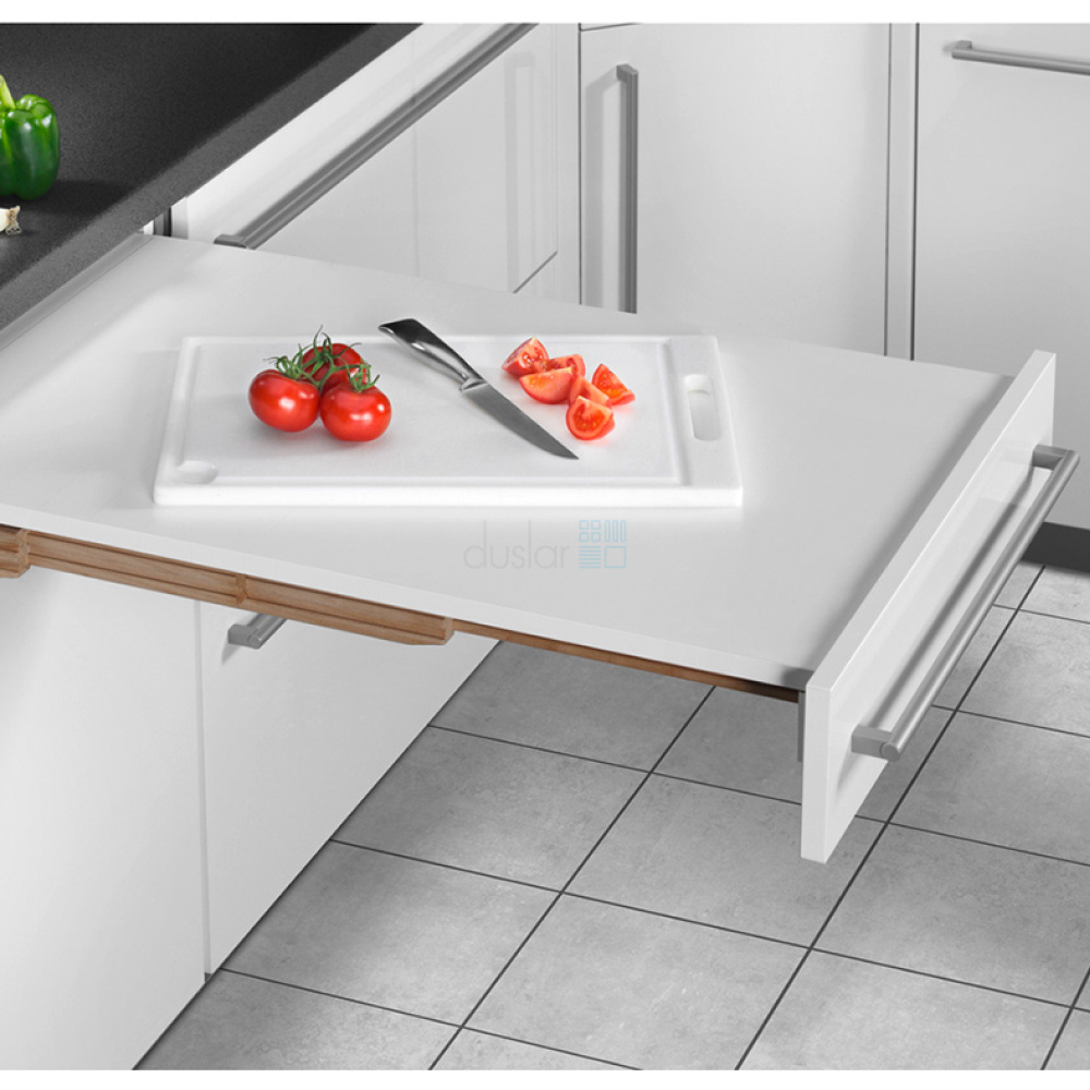 • Выдвижной стол позволяет значительно расширить полезное пространство кухни за счёт выдвижения столешницы на 800 мм.