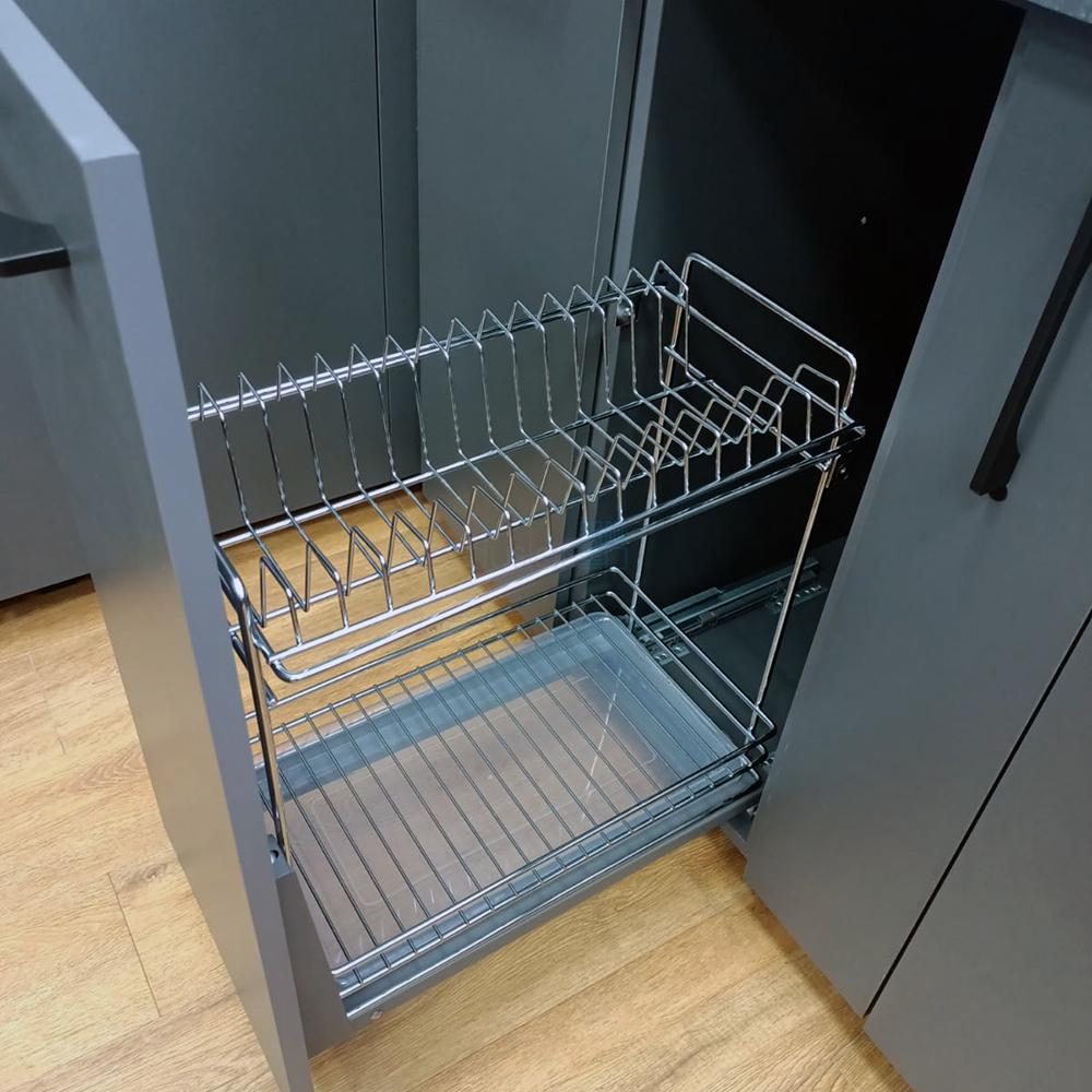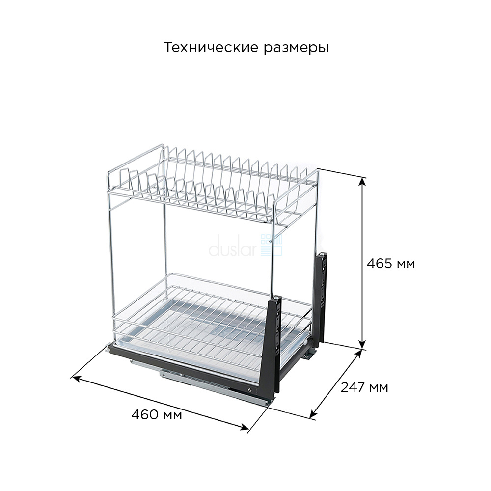 • Выдвижная сушка – отличное решение для кухонь, оборудованных посудомоечными машинами, а также в случаях, когда установка в верхнюю секцию невозможна.
