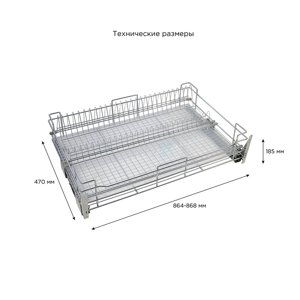 • Габариты сушки с направляющими: ширина 864-868 мм, глубина 470 мм, высота 185 мм.