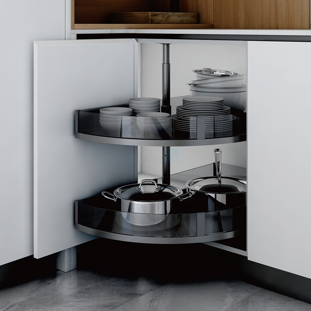 • Карусель обеспечивает удобный доступ к пространству углового шкафа и позволяет максимально эффективно использовать всю площадь корпуса.