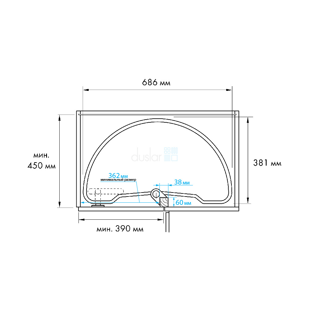 - Внимание! Для правильной установки карусели необходимо дополнительно заказать фальш-планку шириной 60 мм, при этом петли должны быть прямого открывания 90°, 100° или 110°.