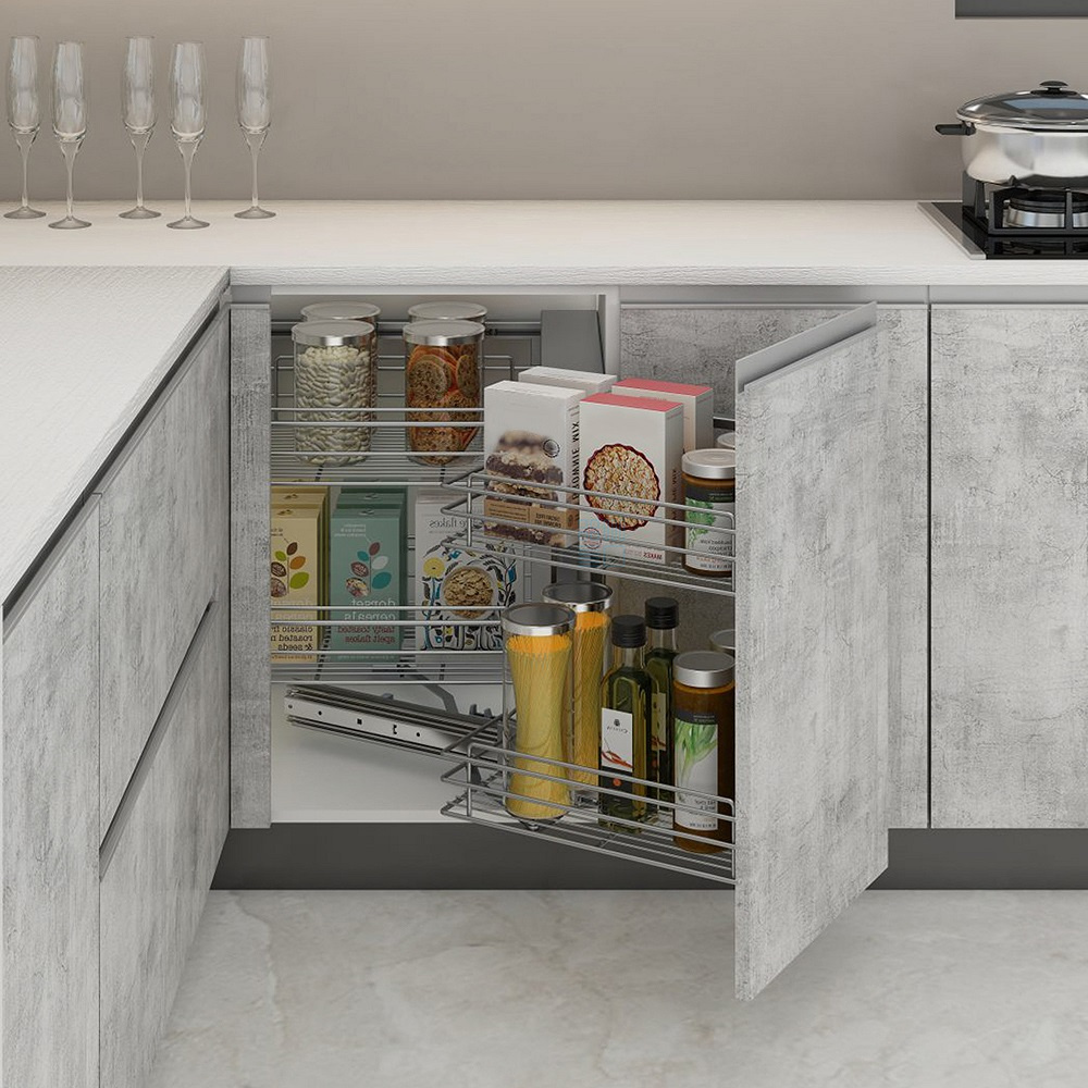 • Волшебный уголок с корзинами из стальной проволоки подходит для кухонь в любом стиле и придает интерьеру элегантный внешний вид.