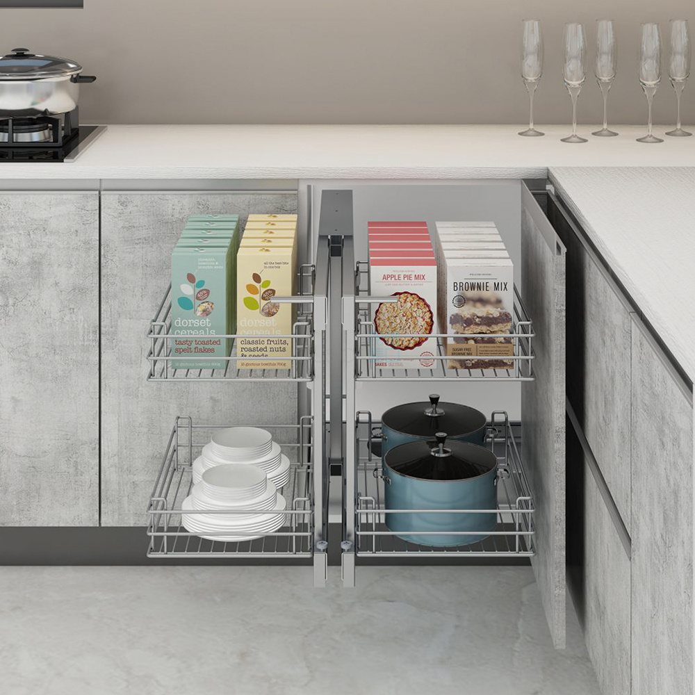 • Волшебный уголок с корзинами из стальной проволоки подходит для кухонь в любом стиле и придает интерьеру элегантный внешний вид.