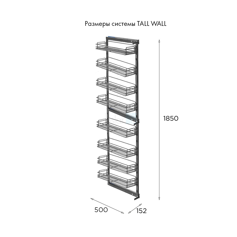 Система TALL WALL с 8 корзинами 129 мм, высота 1850 мм, выдвижной фасад от 200 мм, антрацит
