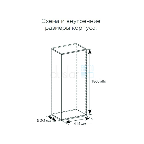 • Минимальные внутренние размеры корпуса: ширина 414 мм, глубина 520 мм, высота 1860 мм.