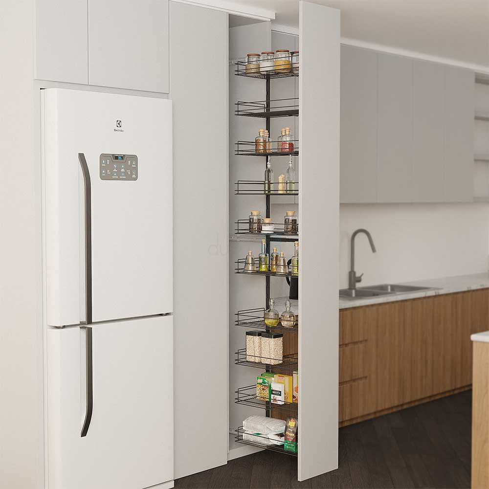 • Функциональное решение для организации хранения большого количества банок, бутылок, соусов и других предметов в высоких узких секциях.
