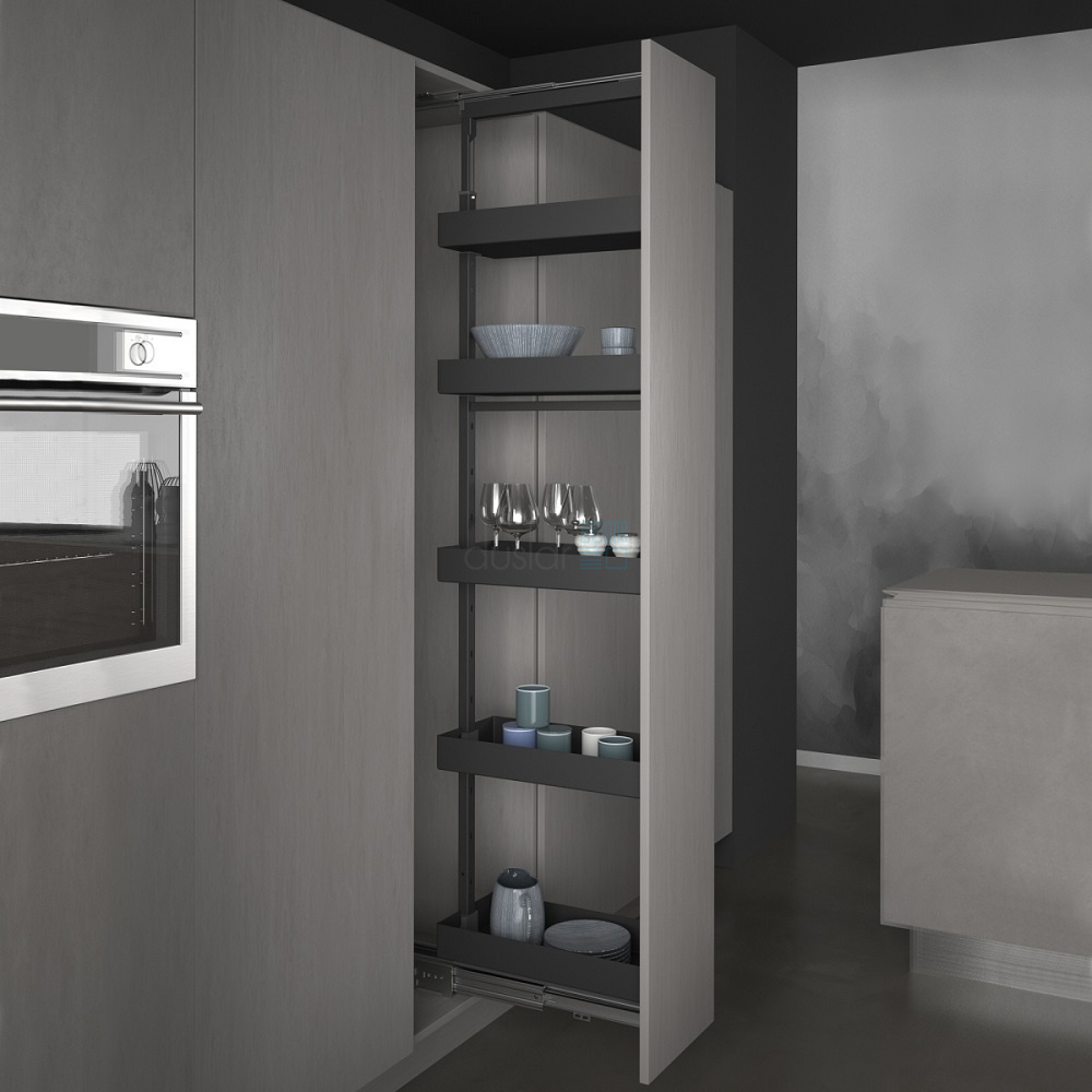 • Стильный дизайн и актуальный цвет антрацит - выдвижная колонна идеально подойдет для каждой кухни.