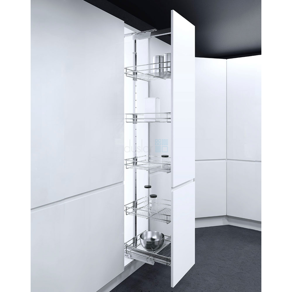 • Комплектация системы 5 корзинами для удобного хранения кухонных предметов, баночек, бакалеи.