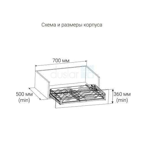 • Минимальные внутренние размеры корпуса: глубина 500 мм, высота 360 мм.