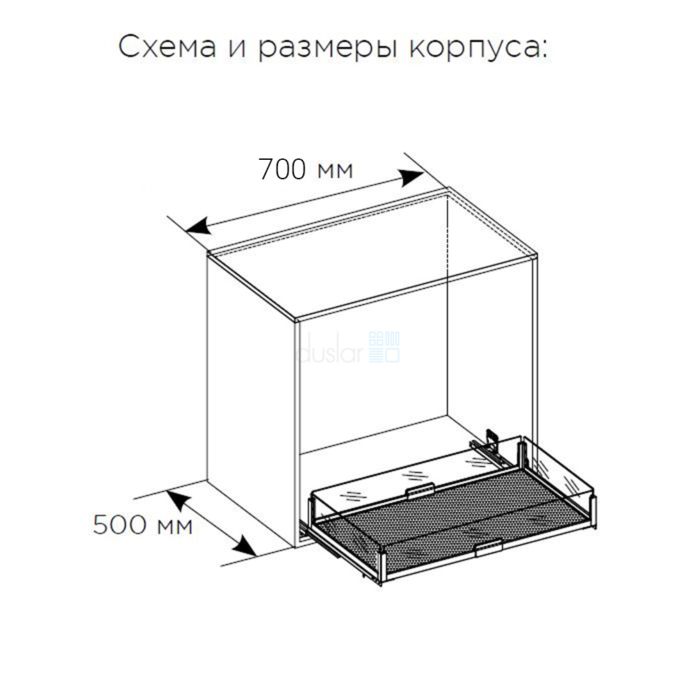 • Габариты корзин с направляющими: ширина 664-668 мм, глубина 472 мм, высота 173 мм.