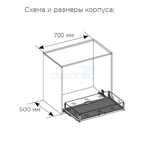 • Габариты корзин без направляющих: ширина 603 мм, глубина 462 мм, высота 125 мм.
