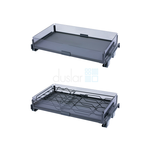 • Выдвижные корзины в стильном исполнении с боковинами из тонированного стекла подойдут для кухонь в любом стиле и придаст интерьеру современный внешний вид.
