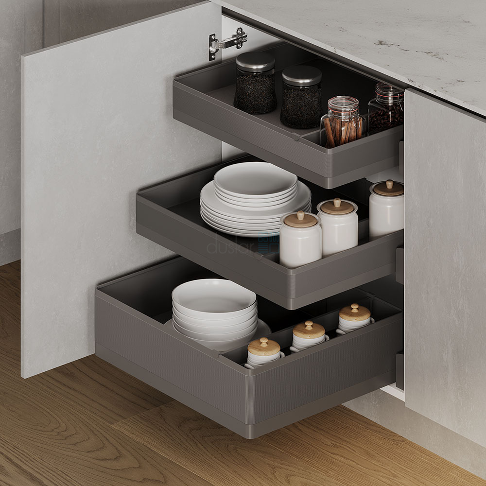 Комплект из 3-х корзин TITAN, высотой 90.5 (2шт.) и 154.5 мм, распашной фасад 600 мм, антрацит