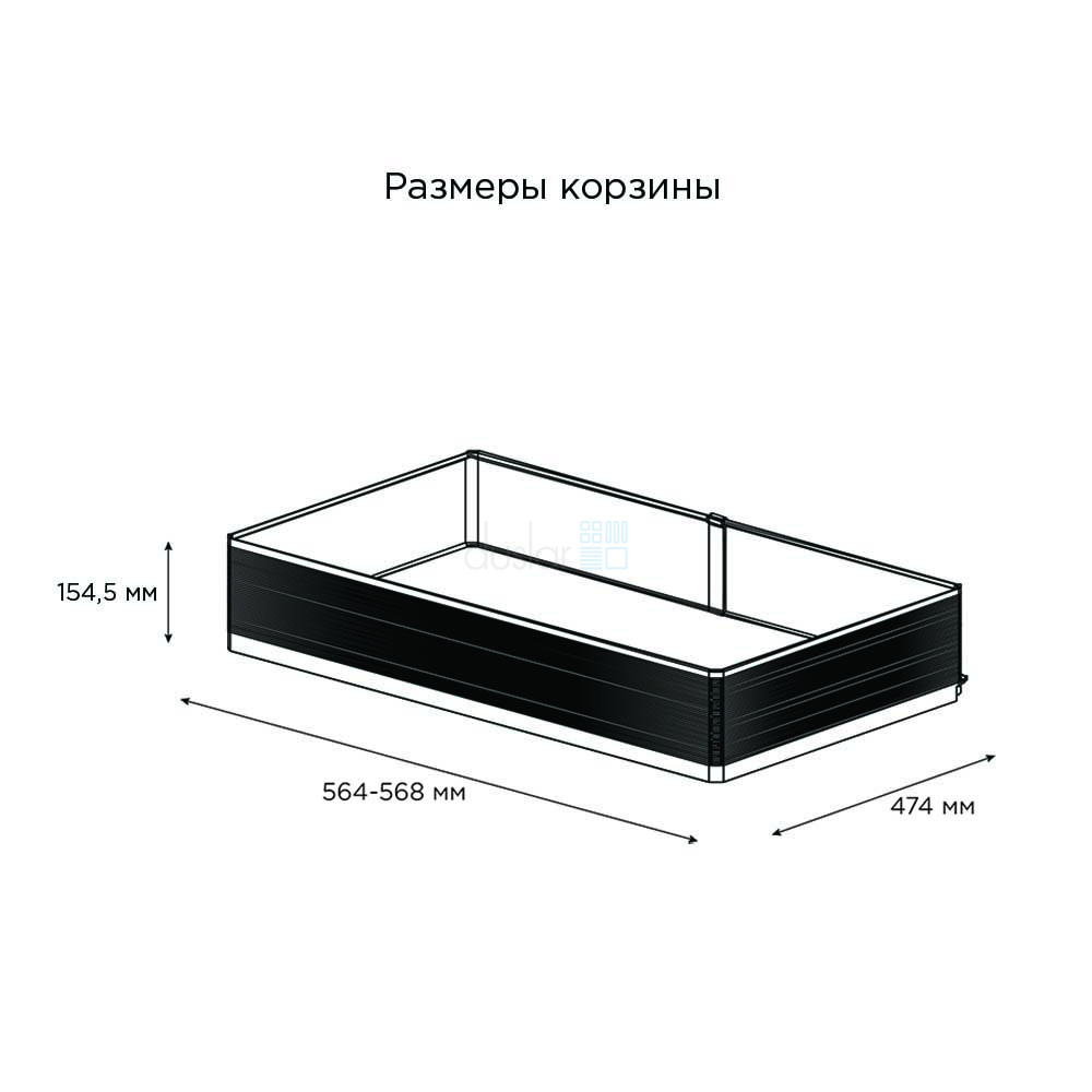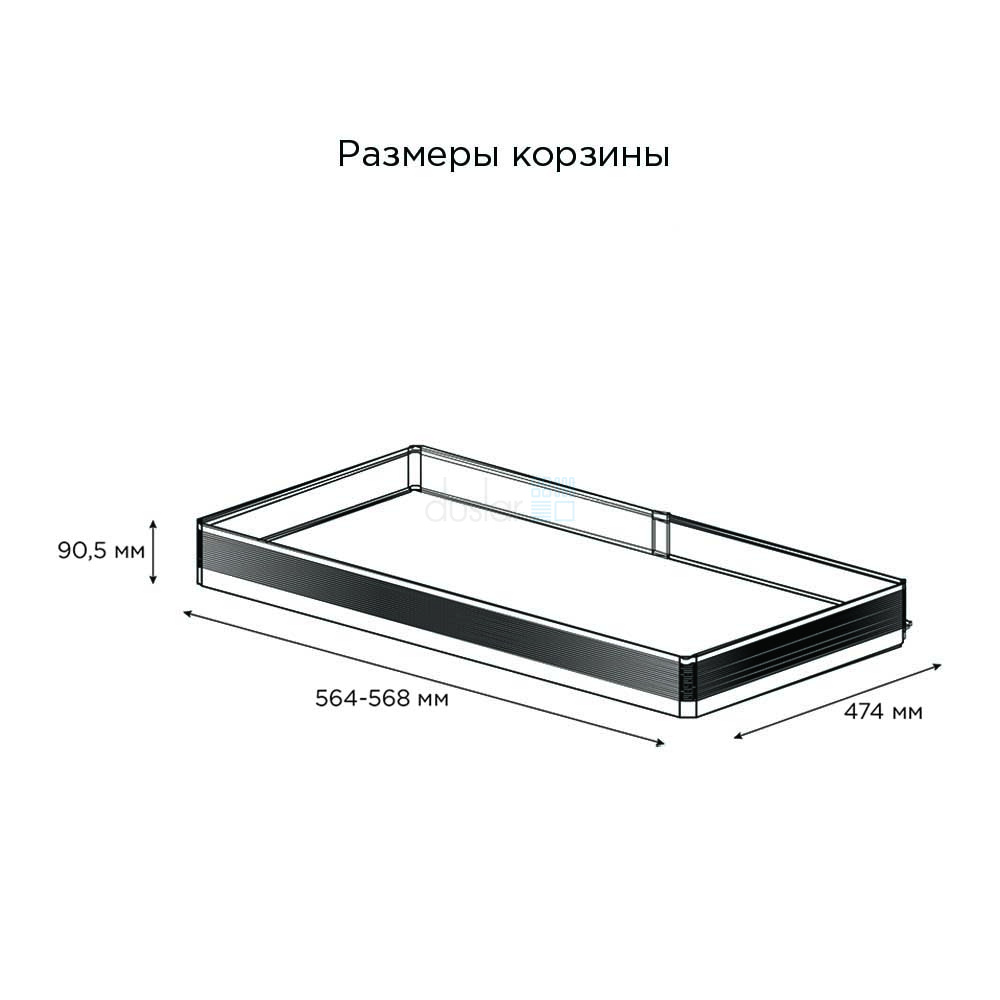 • Габариты корзин с направляющими: ширина 564-568 мм, глубина 474 мм, высота 90,5 мм и 154,5 мм.
