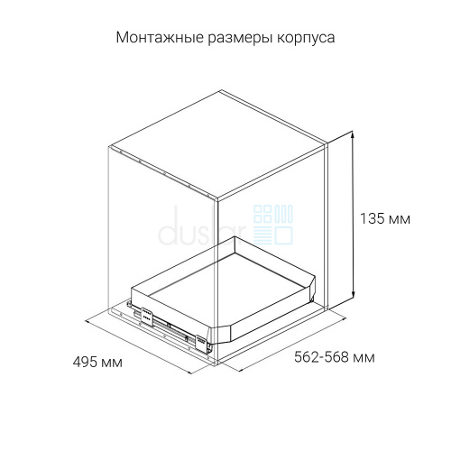 • Минимальные внутренние габариты корпуса: ширина 562-568 мм, глубина 495 мм, высота 135 мм.