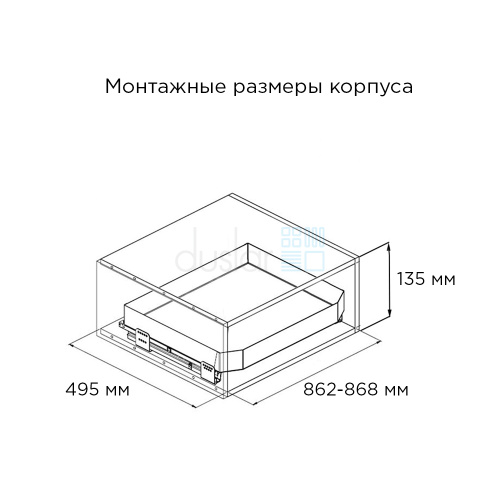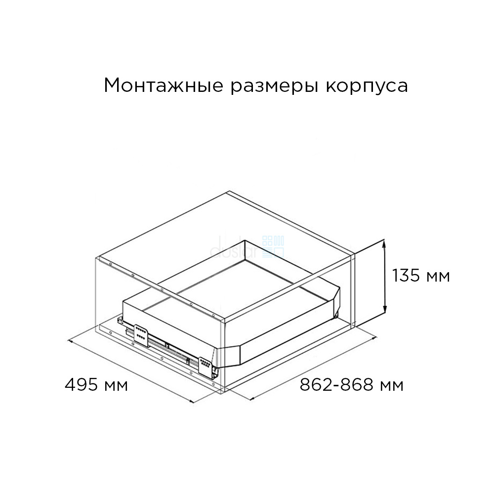 • Минимальные внутренние габариты корпуса: ширина 862-868 мм, глубина 495 мм, высота 135 мм.