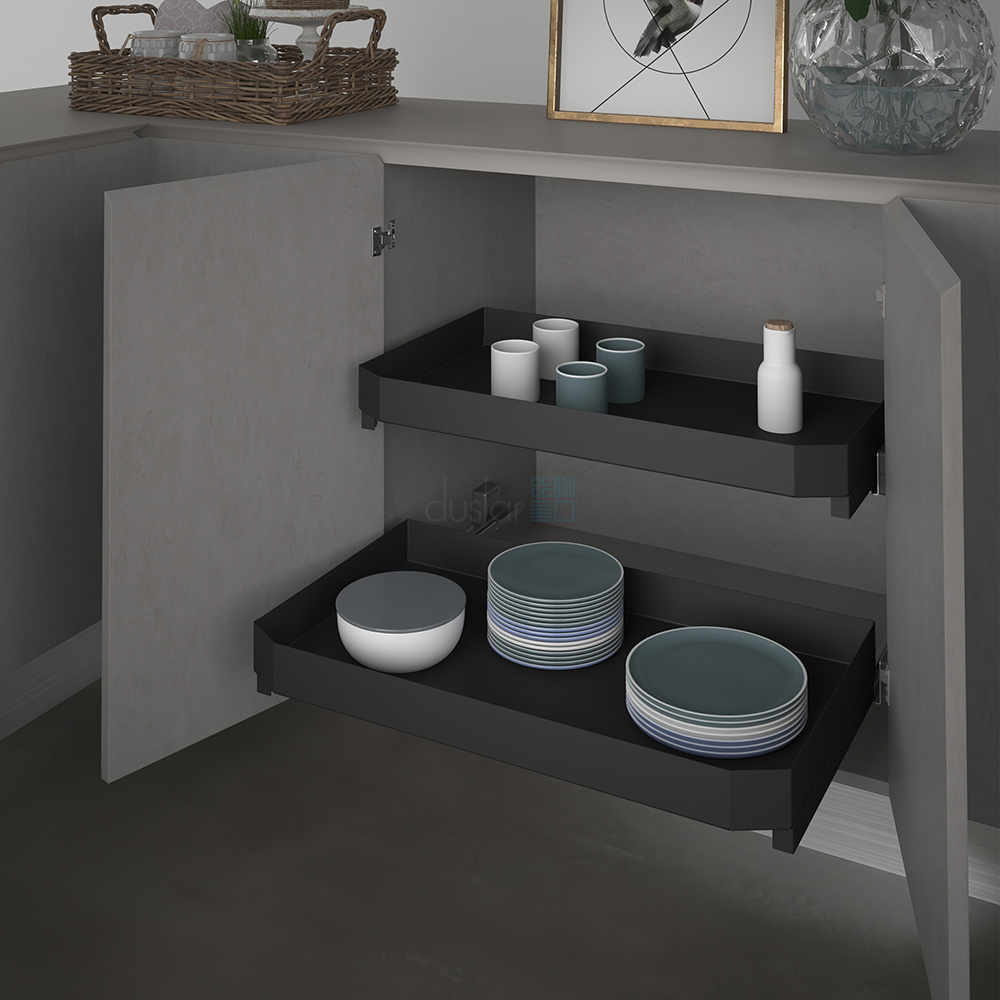 • Доводчик плавного закрывания, встроенный в направляющие обеспечивает мягкое закрытие системы.