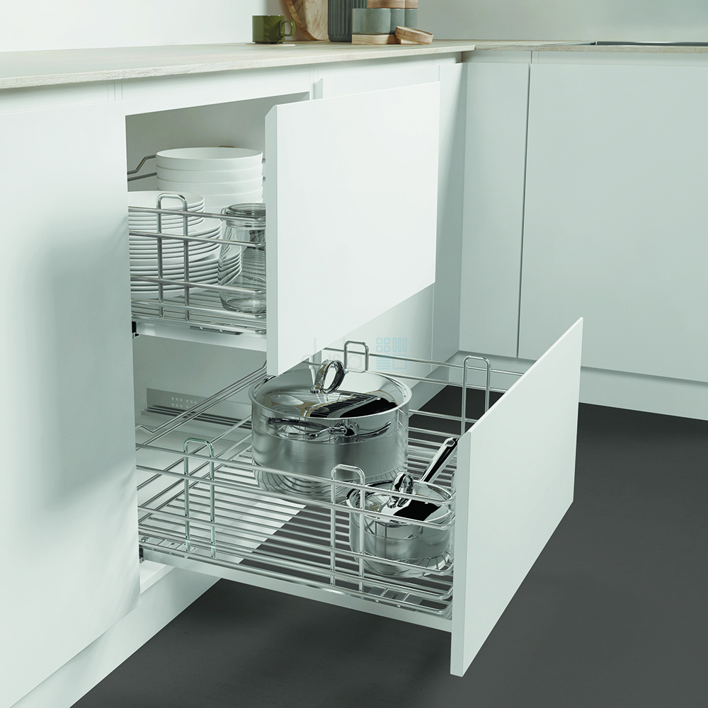 • Корзина полностью выдвигается, обеспечивая удобный и быстрый доступ к продуктам и предметам, хранящимся внутри.